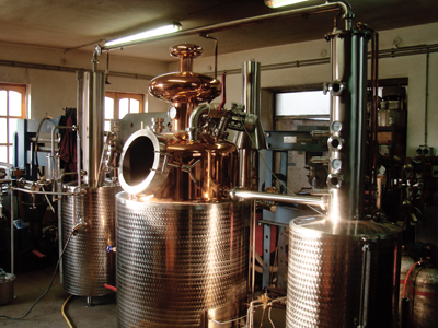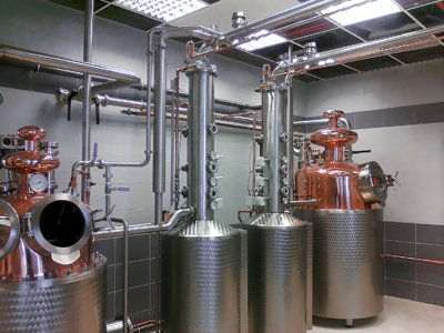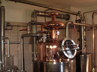 | Finomító oszlop: | 2 db speciális finomító tányérral, egyedi, többszörösen növelt felületű, ki-be kapcsolható réztöltetű aromadúsító egységgel kiegészítve a gyümölcsaromák kíméletesebb és biztonságosabb kinyeréséhez, a finomító tányéroknál látüveggel, külső rászerelt világítással, saját fejlesztésű növelt felületű deflegmátorral. |